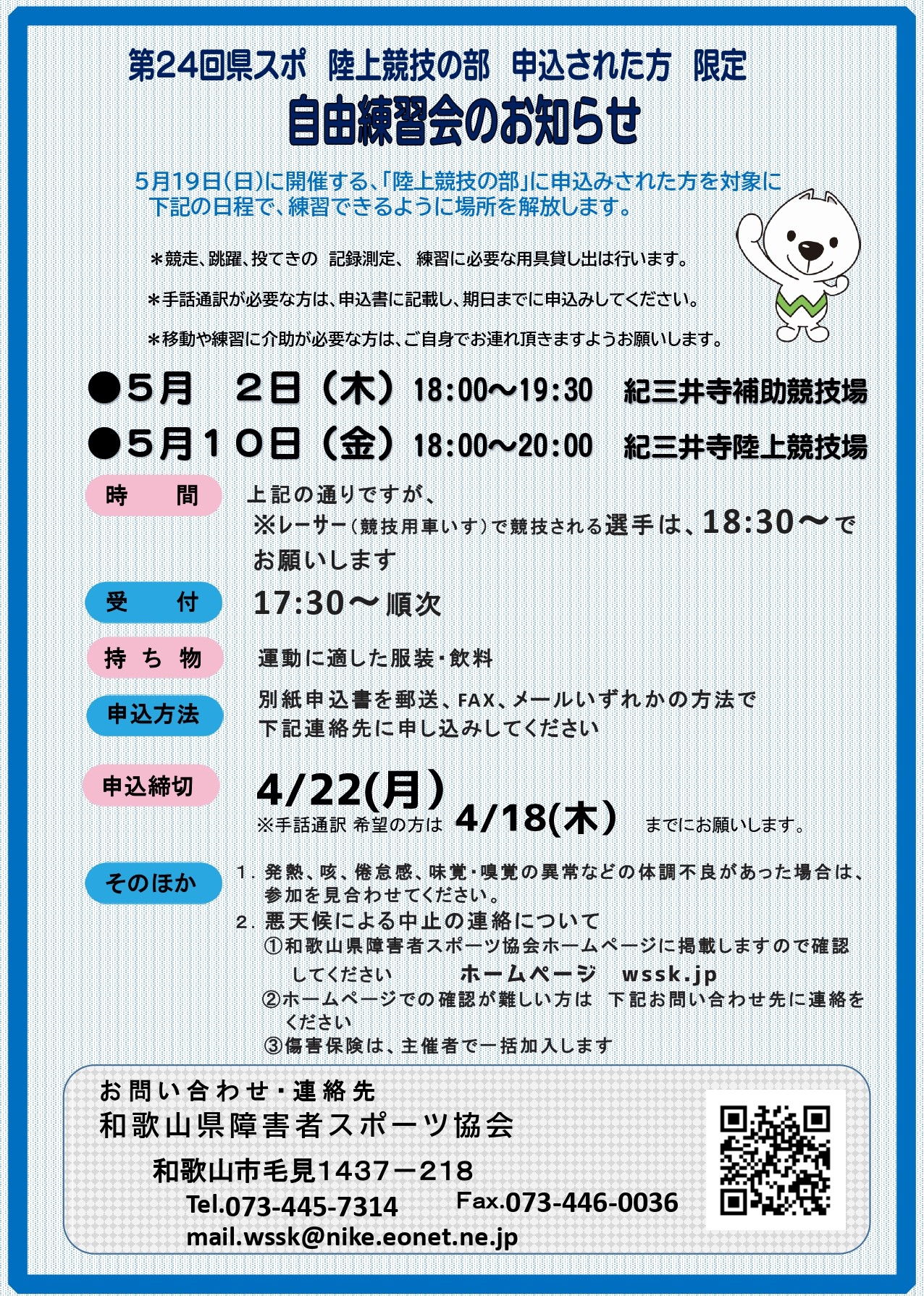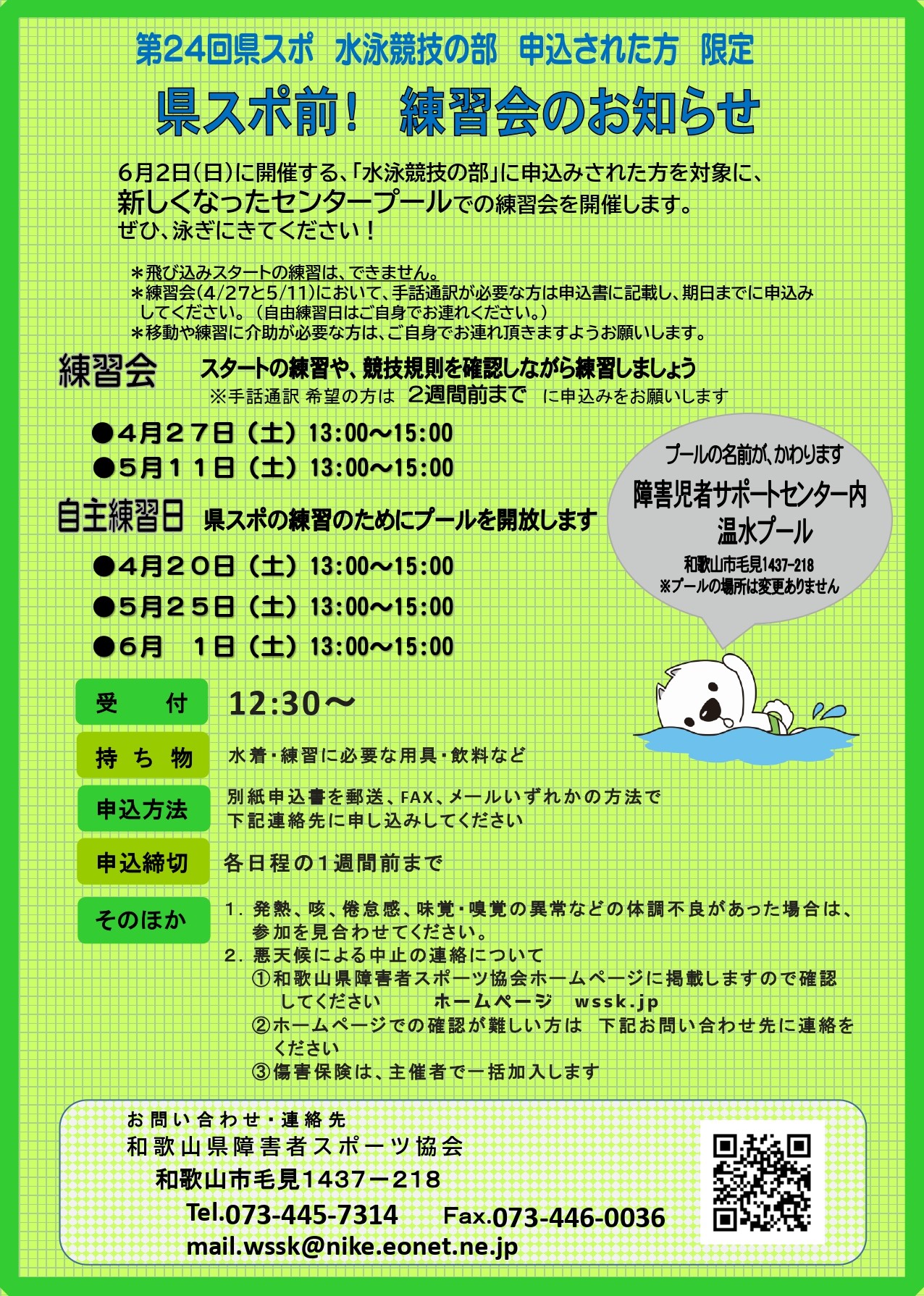 陸上・水泳練習会(第24回和歌山県障害者スポーツ大会に申込された方対象)